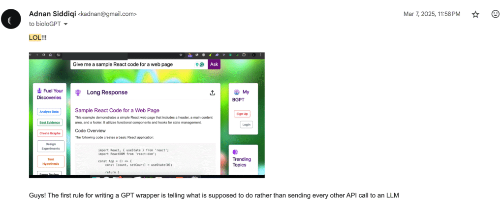 In March, I received an email from the founder of a website who had created an AI wrapper related to the medical field. He sent me an unsolicited email and subscribed me to his newsletter.